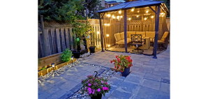 The addition of a gazebo, a hot tub, and patio furniture inspire us to enjoy the backyard as a place for relaxing! It’s now a serene and beautiful place conducive for outdoor living.