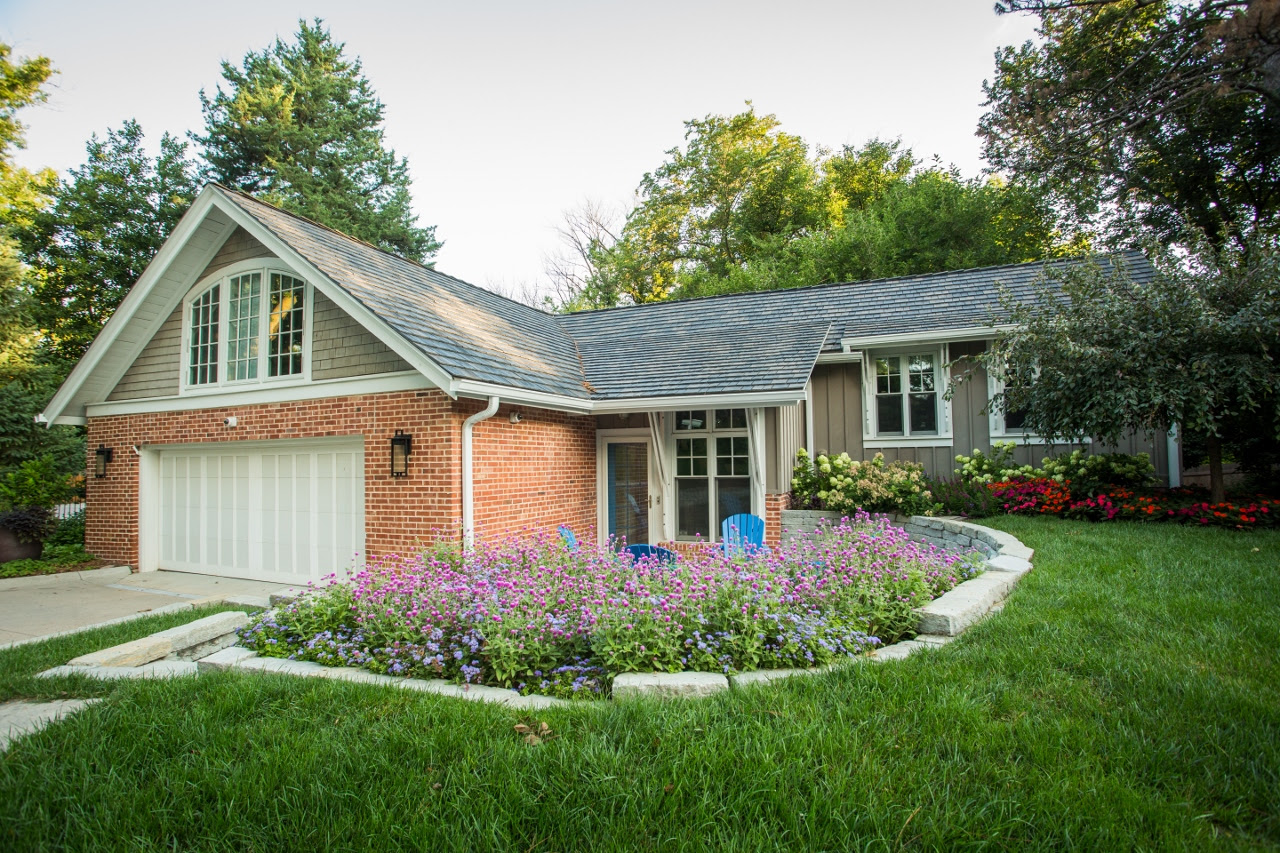 “Curb appeal really is about stepping back and looking at a home from the top down,” says Smith. “You can shake up the appearance of a house with small changes, like a new entry door, repainting the trim or adding shutters in a color that plays off the roof color.
