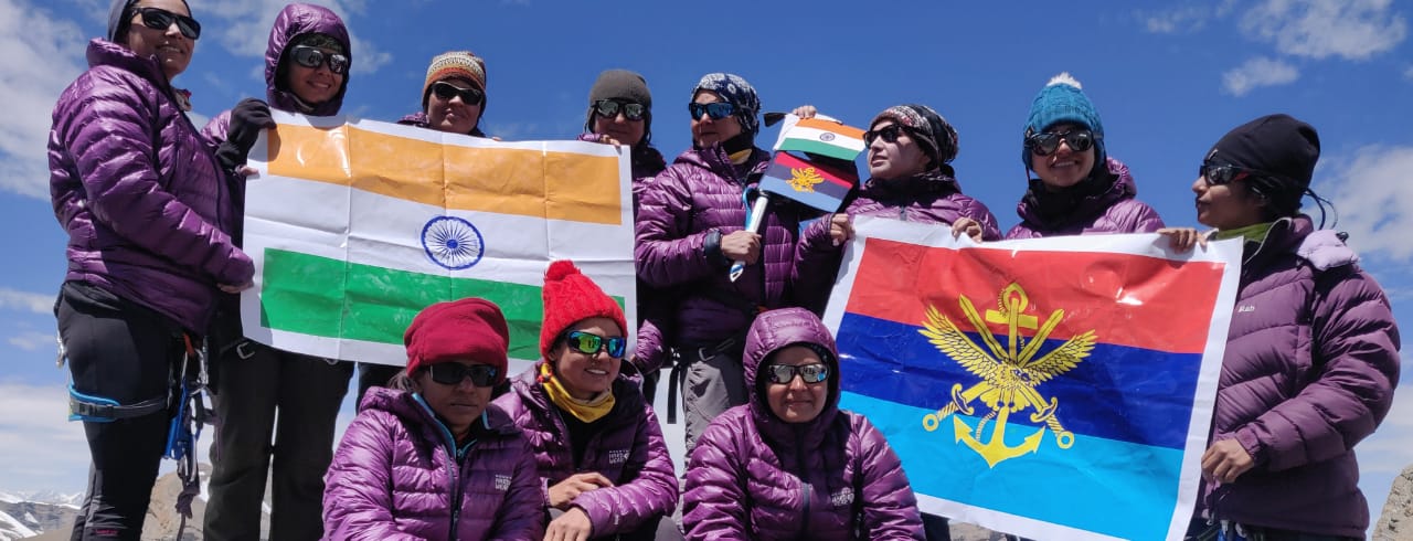 The 15-member expedition team was led by Wing Commander Bhavana Mehra of the Indian Air Force. The other members of the team who summited the peak and hoisted the national flag atop are Wg Cdr Bhavna Mehra, Lt Col Geetanjali Bhatt, Wg Cdr Nirupama Pandey, Wg Cdr Vyomika Singh, Wg Cdr Lalita Mishra, Maj Usha Kumari, Maj Saumya Shukla, Maj Veenu Mor, Maj Rachana Hooda, Lt Cdr Sino Wilson and Flt Lt Komal Pahuja.