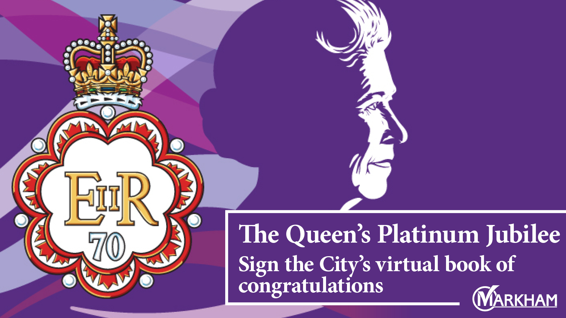 In addition to the lighting of the Markham Civic Centre and the Markham gateway sign, the City of Markham has also created a virtual book of congratulations that can be found online at YourVoiceMarkham.ca/QueenJubilee. Markham residents are invited to sign the virtual book of congratulations from now until June 26, 2022.
