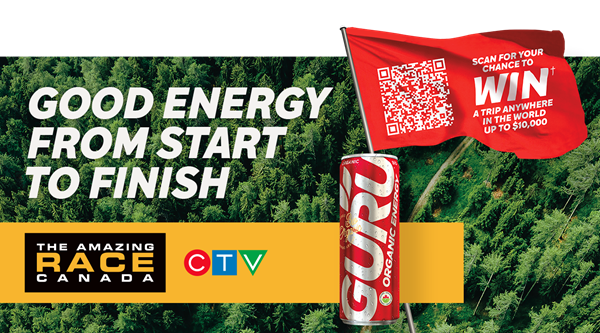 Canada’s leading organic energy drink brand, is pleased to announce that it has partnered with CTV’s THE AMAZING RACE CANADA as a sponsor. Showcasing unique activations for the racers throughout the season and offering the winners a once-in-a-lifetime trip for two around the world, GURU will also be running a contest online and in store allowing Canadians to get in on the action and win their own unforgettable trip to anywhere in the world, for a value of up to $10,000.