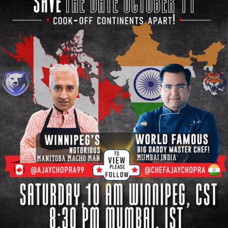 14 Oct 202014 Oct 2020 Editor First Live Cook-Off Continents Apart! Celebrity Chef Ajay Chopra of Mumbai and Ajay Chopra of Winnipeg, Canada!